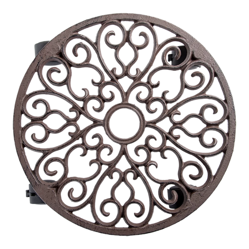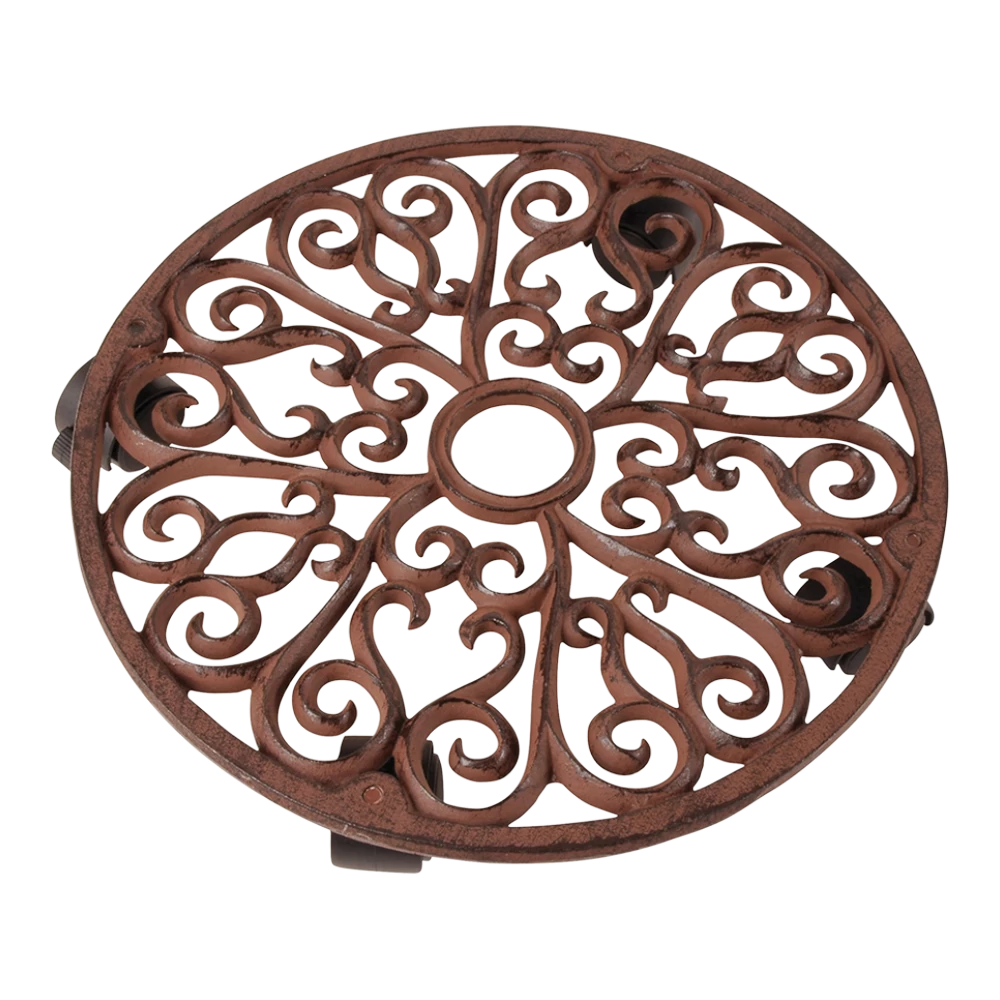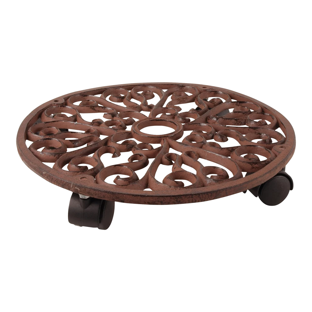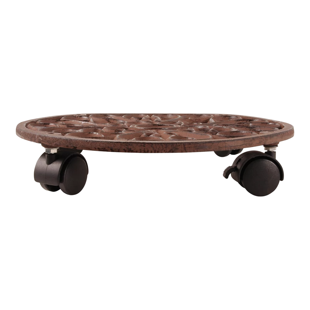 Ronde plantentrolley van gietijzer voorzien van zwenkwielen maat L